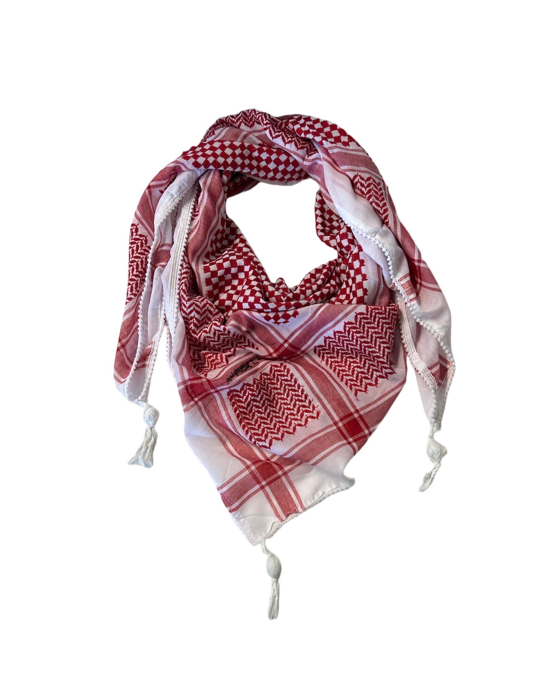 Authentic high quality Keffiyeh Scarf, Made in Jordan (48"x48") red on white