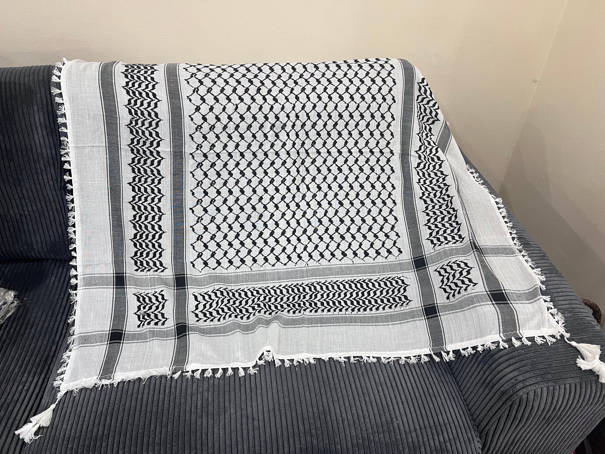 Authentic original kuffiyeh, black and white, with tassels, free shipping, Palestine, Arafat